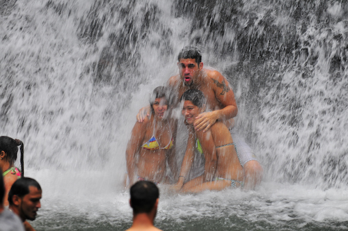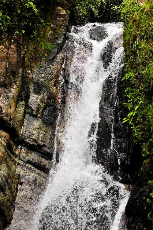 After about 45 minutes of downhill hiking, we made the falls. Photos really don’t do it justice – it is magnificent. I didn’t have a wide angle lens on me – I only brought the 70-200 mm f2.8, so my attempts to capture the falls do sucketh. Why only the long lens? Well, it was raining off and on. Not the occaisional drizzle, mind you – I mean full on tropical rain. So I thought it best not to try a lens change and just packed my workhorse for the hike. Ya, I’m a wuss.