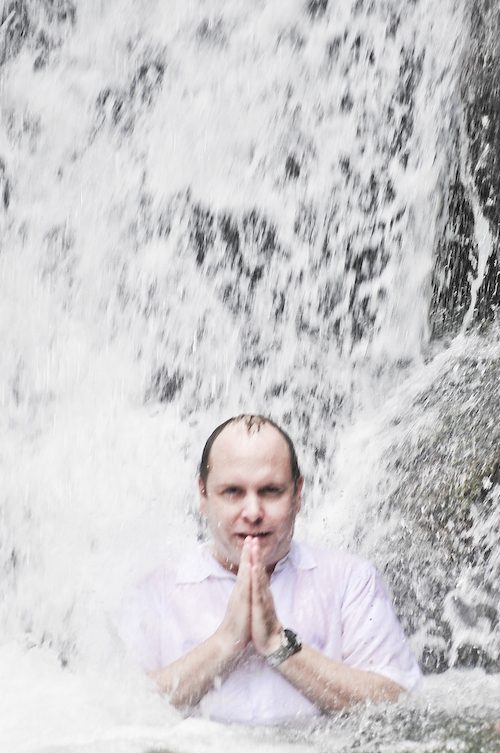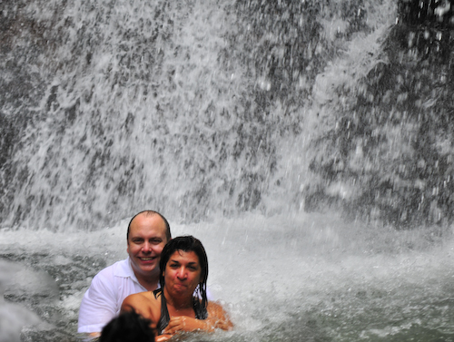 After watching everyone else have fun in the water, I begged and pleaded for Mary to join me in the negative ion stream. Somehow, after only a few minutes, she relented. Brenna took the shot with my D300 and 70-200 mm telephoto, which is a real bugger if you’re not used to it. The thing weighs a ton, but she made a very nice photo despite the numerous challenges in front of her.