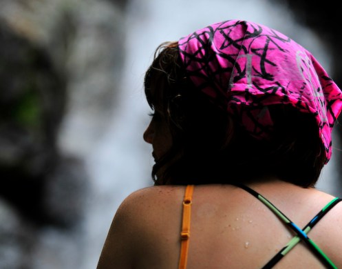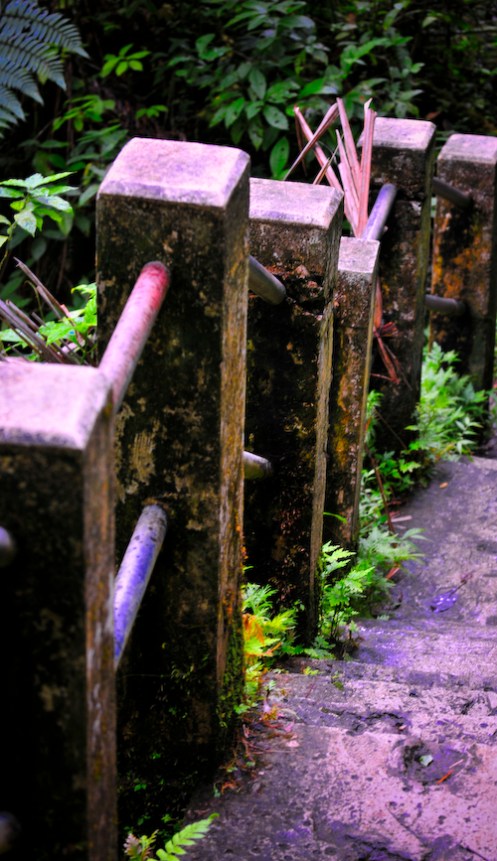 After about 45 minutes of downhill hiking, we made the falls. Photos really don’t do it justice – it is magnificent. I didn’t have a wide angle lens on me – I only brought the 70-200 mm f2.8, so my attempts to capture the falls do sucketh. Why only the long lens? Well, it was raining off and on. Not the occaisional drizzle, mind you – I mean full on tropical rain. So I thought it best not to try a lens change and just packed my workhorse for the hike. Ya, I’m a wuss.