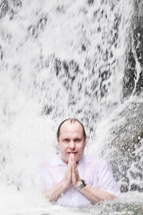 After watching everyone else have fun in the water, I begged and pleaded for Mary to join me in the negative ion stream. Somehow, after only a few minutes, she relented. Brenna took the shot with my D300 and 70-200 mm telephoto, which is a real bugger if you’re not used to it. The thing weighs a ton, but she made a very nice photo despite the numerous challenges in front of her.