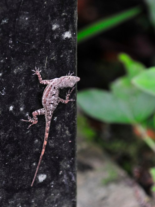 Geckos are also quite common along the trail, and they come in a variety of colors. This one had just jumped up from the gravel path and hadn’t yet changed its colors.