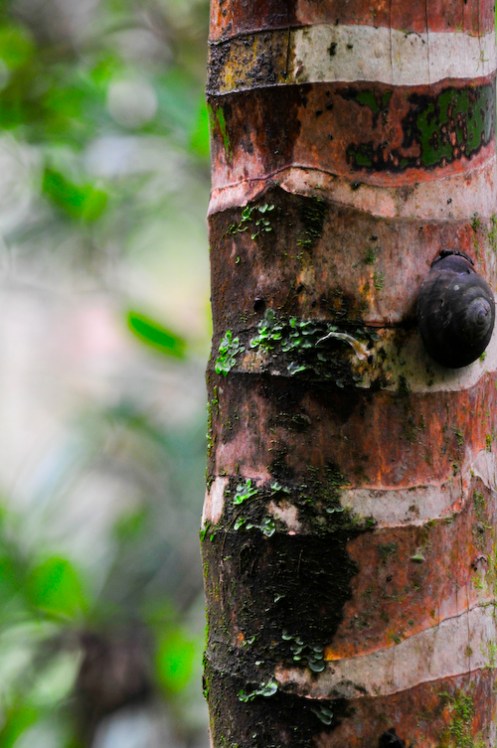 Another snail climbs for the canopy. I wonder what they do up there, and what prompts them to come down?